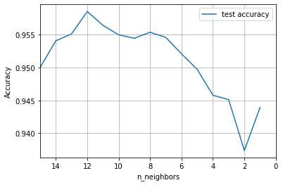 results["param_knn__n_neighbors"], results["mean_test_score"], label="test accuracy"